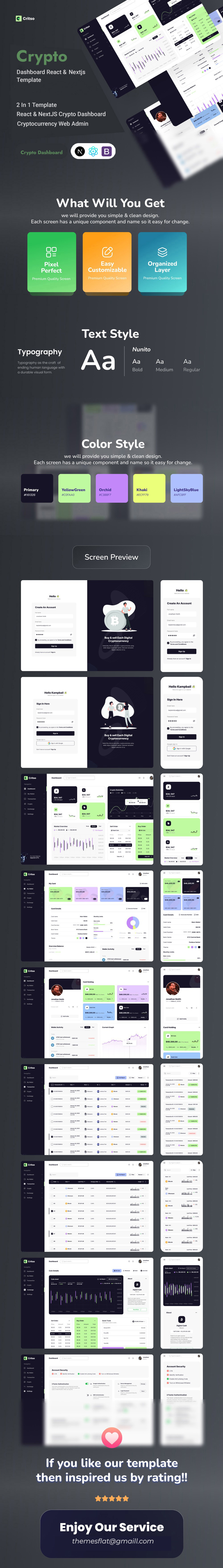 Node.js 16.14 or later, React 19 and NextJs 15 technologies09 Unique PagesCrypto Dashboard React & NextJSResponsive TemplateFree icons usedPixel PerfectClean & Unique DesignEasy to customizeRetina ReadyUnlimited ColorsAjax Contact FormAjax Appointment FormFilter productPopup cart, popup searchParallax Effect& much more…Credits