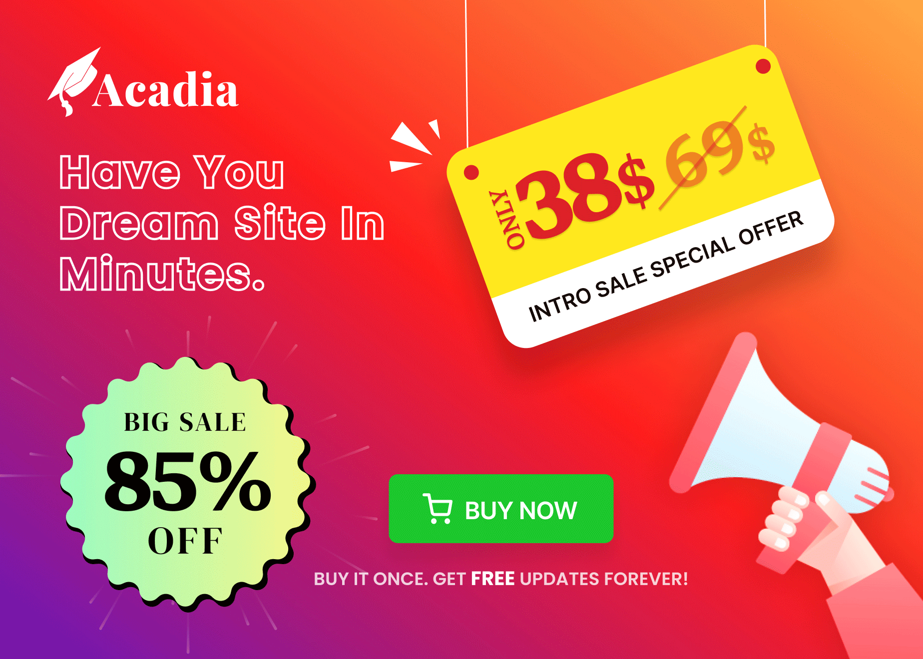 design and development for building a functional and compelling education theme. And here it is, Acadia, a perfect