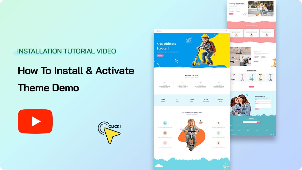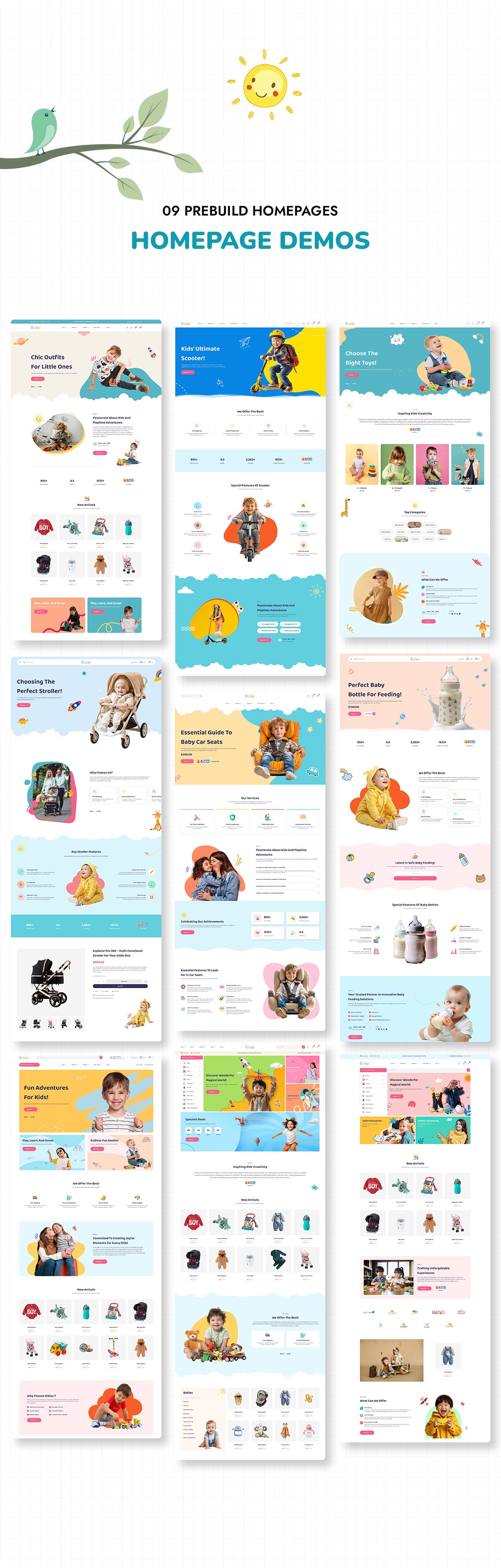With 09 carefully crafted homepage demos, Kidioz offers the versatility to support both boutique multi-product stores and powerful single product campaigns. Among them are 04 dedicated single product layouts—showcasing standout items like Kids’ Scooter, Baby Bottle, Car Seat, and Baby Stroller—each designed to maximize product focus and boost engagement. The remaining 05 homepages cater to broader catalog needs, ideal for growing baby and maternity collections.